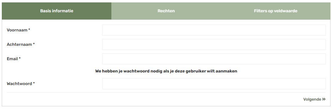 Voer voor-, achternaam en email van de gebruiker in die je wilt uitnodigen. Daaronder voer je je eigen wachtwoord in. Dit gebruiken we als extra beveiligingscheck.