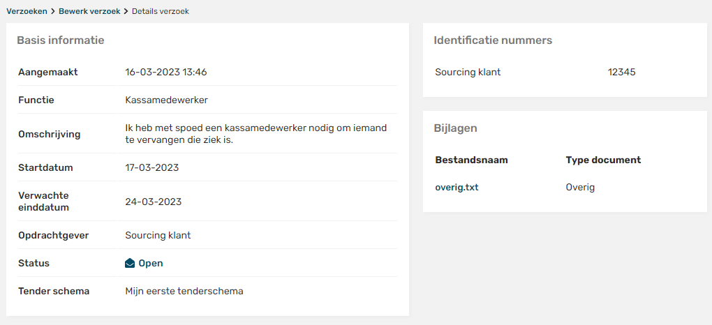 Vul alle gegevens in en je bent klaar voor het aanbieden van deze persoon! Ga weer naar verzoeken en open het verzoek en klik op onderstaande knop.