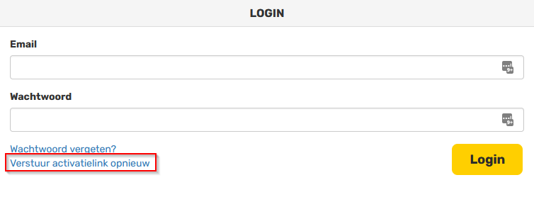 Je kunt een nieuwe activatielink opvragen via de link op de login pagina: